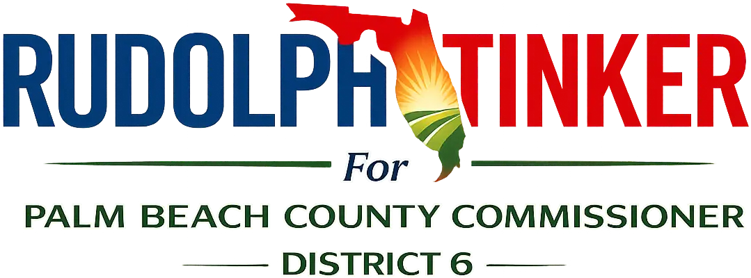Rudolph "Rudy" Tinker is a U.S. Army veteran, small business owner, contractor, and educator who has called Palm Beach County District 6 home for more than 27 years and believes government should work for the people it serves. He is running because taxes and costs keep rising while waste, poor planning, and unaccountable county decisions hurt families and small businesses. His seven-point plan delivers clear, practical solutions to cut waste, lower costs, reform county services, and restore responsible, people-first leadership.